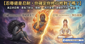 忍辱還是忍耐,你確定你修行修對了嗎? 很多人把「委屈求全」誤解為佛家的忍辱。 真正的忍辱,是為了對治「我執」,而不是為了餵養對方的「傲慢」。 忍辱還是忍耐,你確定你修行修對了嗎? 閱讀全文 »忍辱, 怒目金剛, 慈悲心, 自我療癒